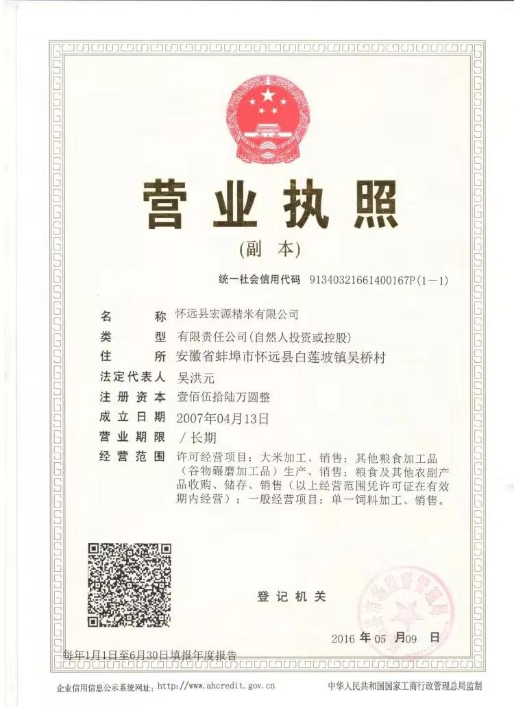 懷遠(yuǎn)縣宏源精米有限公司,原懷遠(yuǎn)縣找郢宏源精米廠,成立于2002年,是一家集糯米、水磨糯米粉生產(chǎn)、加工、銷售為一體的股份制民營企業(yè),企業(yè)位于懷遠(yuǎn)縣白蓮坡鎮(zhèn)吳橋工業(yè)區(qū),(G345國道17公里800米處)。公司注冊資金500萬元,現(xiàn)有資產(chǎn)2155萬。其中固定資產(chǎn)1065萬元,公司占地1.32萬余平方米,建筑面積1萬余平方米,公司擁有倉容為1萬噸的專用糧食倉庫,1條糯米生產(chǎn)加工線日產(chǎn)糯米200噸, 1條水...